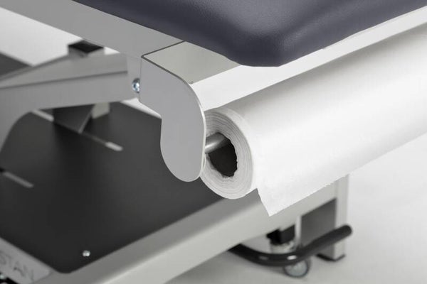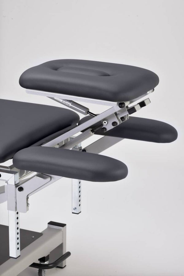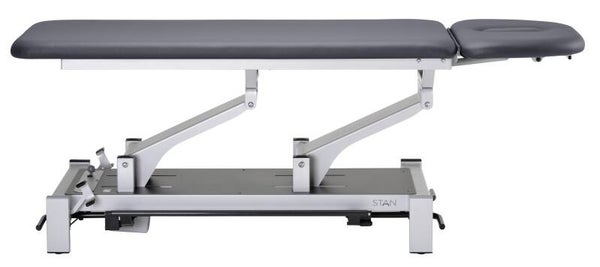 Die Betätigung der Liege erfolgt mit einer Doppeldruckbetätigung (zusätzliche Freigabefunktion), um ein unbeabsichtigtes Verfahren der Behandlungsliege zu verhindern. Nach einer voreingestellten Zeit erfolgt die automatische Abschaltung der Höhenverstellung und erst mittels erneuter Betätigung der Doppeldruckbetätigung erfolgt die Höhenverstellung der Liege.