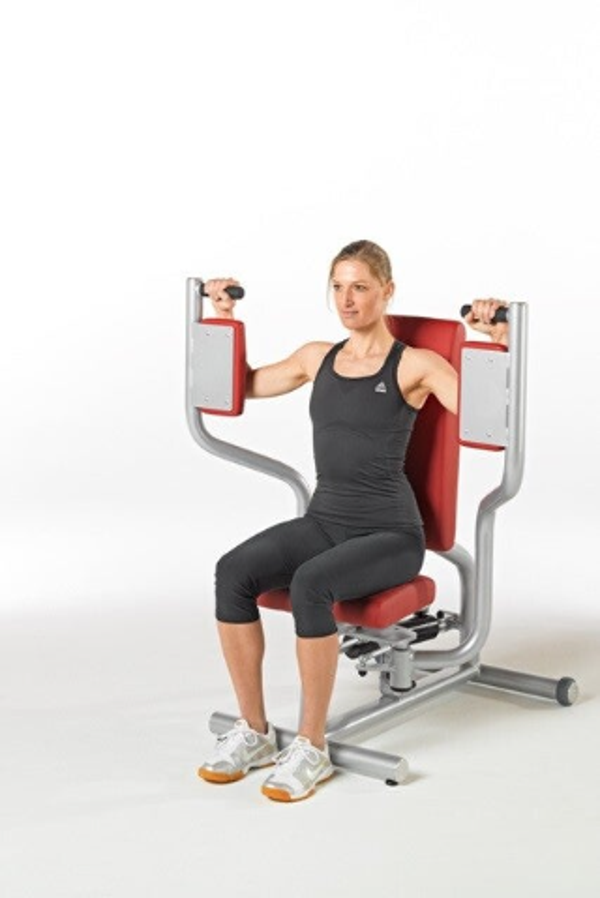 • Trainiert die Pektoral-, Schulter und obere Wirbelsäulen-Muskulatur.